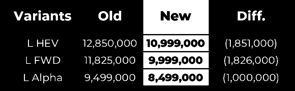 Sportage L HEV | 12,850,000 | 10,999,000 | 1,851,000 |