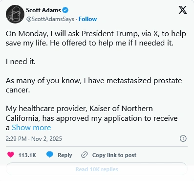 American cartoonist Scott Adams, widely recognized as the creator of the comic strip Dilbert, has appealed directly to U.S. President Donald Trump for assistance in expediting his cancer treatment. Months after being diagnosed with metastasized prostate cancer, Adams stated that he would request the President’s intervention to prompt his healthcare provider, Kaiser Northern California, to schedule his therapy.