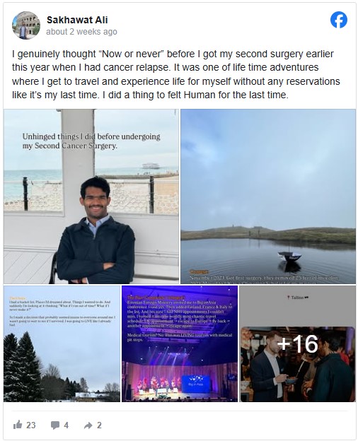 Last September, Sakhawat moved to the United Kingdom to pursue a degree in Energy and Sustainability: Energy, Resources and Climate Change at the University of Southampton. Despite the physical and emotional challenges, he remained determined. “It’s tough, but I’m staying steady and focused on getting through this cycle one day at a time,” he shared. “I’ve lost some weight and the pain comes and goes, but I’m still here, still fighting, and still grateful for the love you all keep sending my way. Your prayers and messages honestly keep me grounded.”
