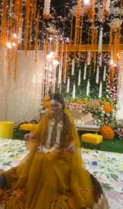 Mehrunisa Iqbal’s Mayun Event: An Unforgettable CelebrationOn her social media, the talented actress shared a touching video from her Mayun ceremony. Mehrunisa looked stunning in a gorgeous mustard yellow outfit made from chiffon and silk; the rich yellow was perfect for the festive occasion.