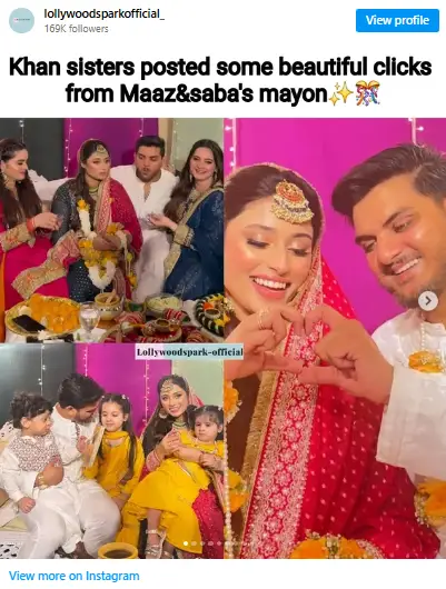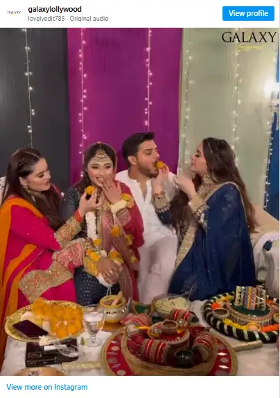 In clips shared online, Minal and Aiman Khan were seen enjoying every bit of the celebration, joining in playful traditions with the soon-to-be-wed couple, Maaz and Saba. One sweet moment showed the sisters applying mehndi on the bride and groom’s faces and feeding them oversized ladoos, keeping the energy light and fun.