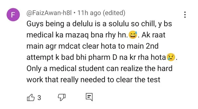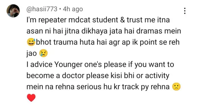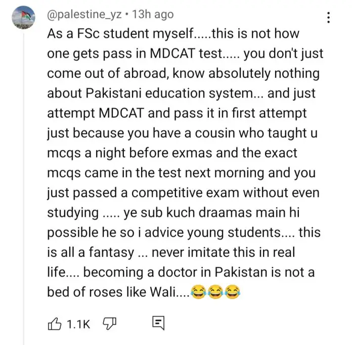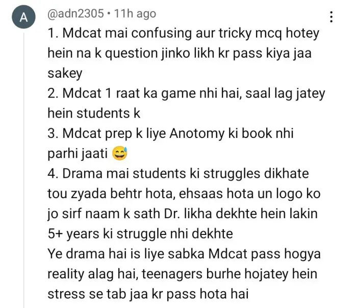 MDCAT is known to be one of the toughest entrance exams in Pakistan, with many students needing multiple attempts to qualify. This oversimplification struck a nerve with real-life aspirants. One viewer commented, “I am a repeater and trust me it is not this easy.”