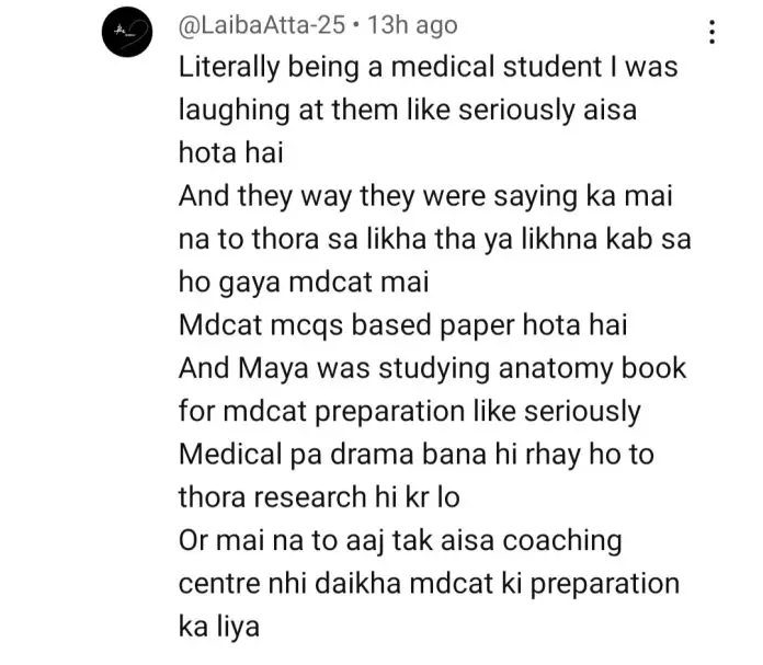 In the show, characters Wali and Maya, played by Samar Jafri and Aina Asif, appear to clear the highly competitive MDCAT (Medical and Dental College Admission Test) with ease. Wali, in particular, is shown preparing for the exam in a single night and still passing—a portrayal that didn’t sit well with many viewers.