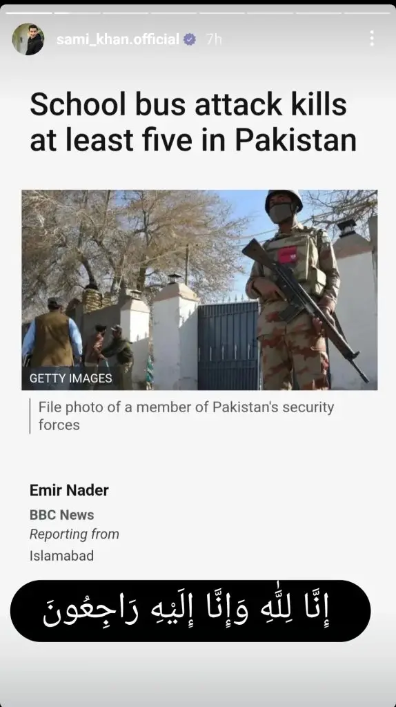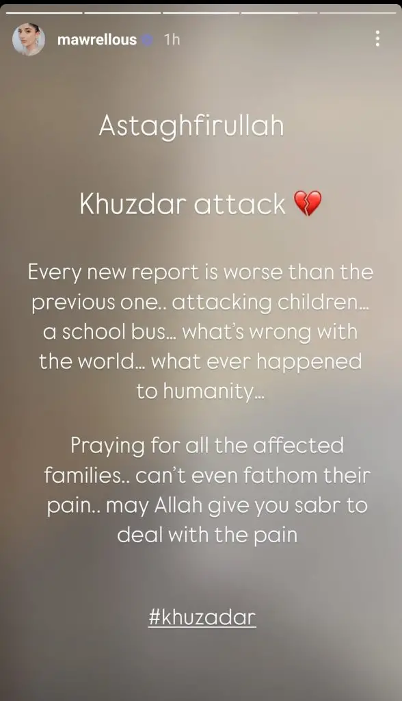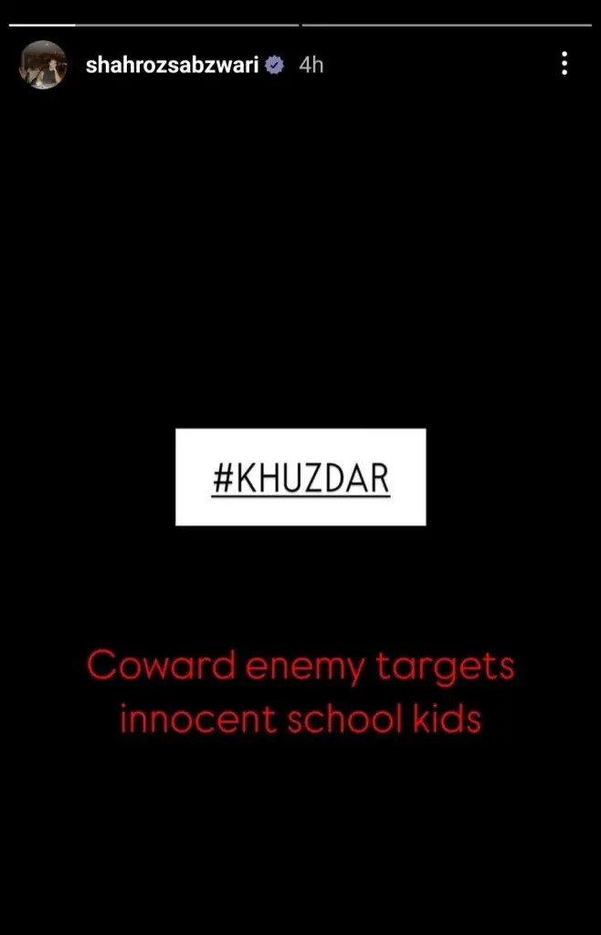 Shahroz Sabzwari also condemned the attack, writing, “Coward enemy targets innocent school kids.” Mawra Hocane shared her disbelief, saying, “Every new report is worse than the previous one… Attacking children is a heinous crime. What’s wrong with the world? What happened to humanity?”