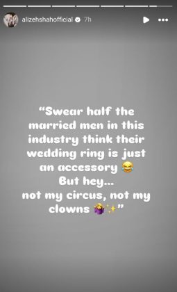 In her latest Instagram story, Alizeh Shah made a surprising statement that has caught many off guard. Taking a clear dig at married male actors, she wrote: