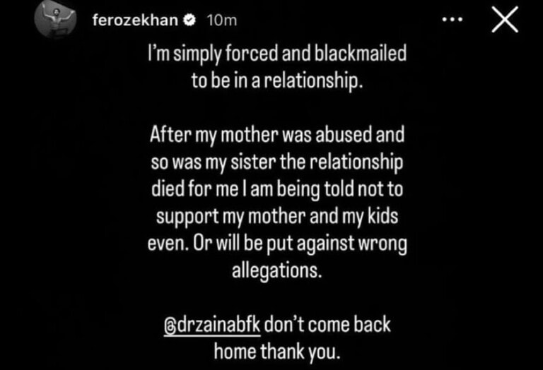 As the situation unfolded, a social media page, Shadab Hussain Siddiqui Blogs, posted an alleged statement from Dr. Zainab’s Instagram account. The post claimed that Zainab had announced her separation from Feroze, citing a lack of trust and bad behavior as the reasons for the split. The statement reportedly read, “I cannot live with a man who does not trust me. His bad behavior has overshadowed all the good times we have shared,” and Zainab reportedly requested privacy during this difficult time.