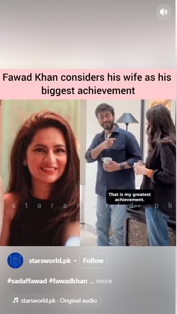 Fans were quick to celebrate Fawad’s admiration for his wife, with many expressing their love for the couple on social media. It is not the first time that the actor has publicly shown his affection for Sadaf, who is also a successful entrepreneur. Together, they have maintained a low-profile personal life while continuously supporting each other in their respective careers.
