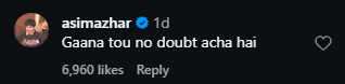 Amid thousands of reactions, Asim Azhar jumped into the comments, writing: