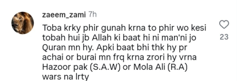 Another user wrote: ‘If you repent and then sin again, what kind of repentance is that if you do not follow what Allah says in the Quran? You may have a point, but it is important to distinguish between right and wrong, otherwise the Holy Prophet (PBUH) and Mola Ali (RA) would not have fought wars.’
