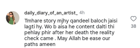 A further comment said: ‘Your story reminds me of Qandeel Baloch. She also used to post similar content earlier, then, after her death, the reality check came. May Allah ease our paths, amen.’