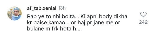 One comment read: ‘God does not say that you earn money by showing your body, and there is a difference between going for Hajj and being invited’