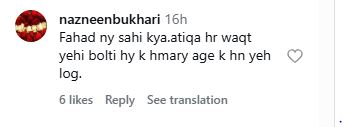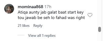 Another commented: Atiqa aunty jab galat baat start key tou jawab be seh lo fahad was right