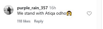 Another commented: We stand with Atiqa odho🙌