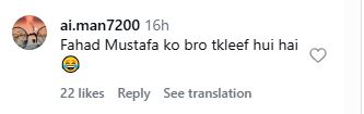 Someone commented: Fahad Mustafa ko bro tkleef hui hai😂