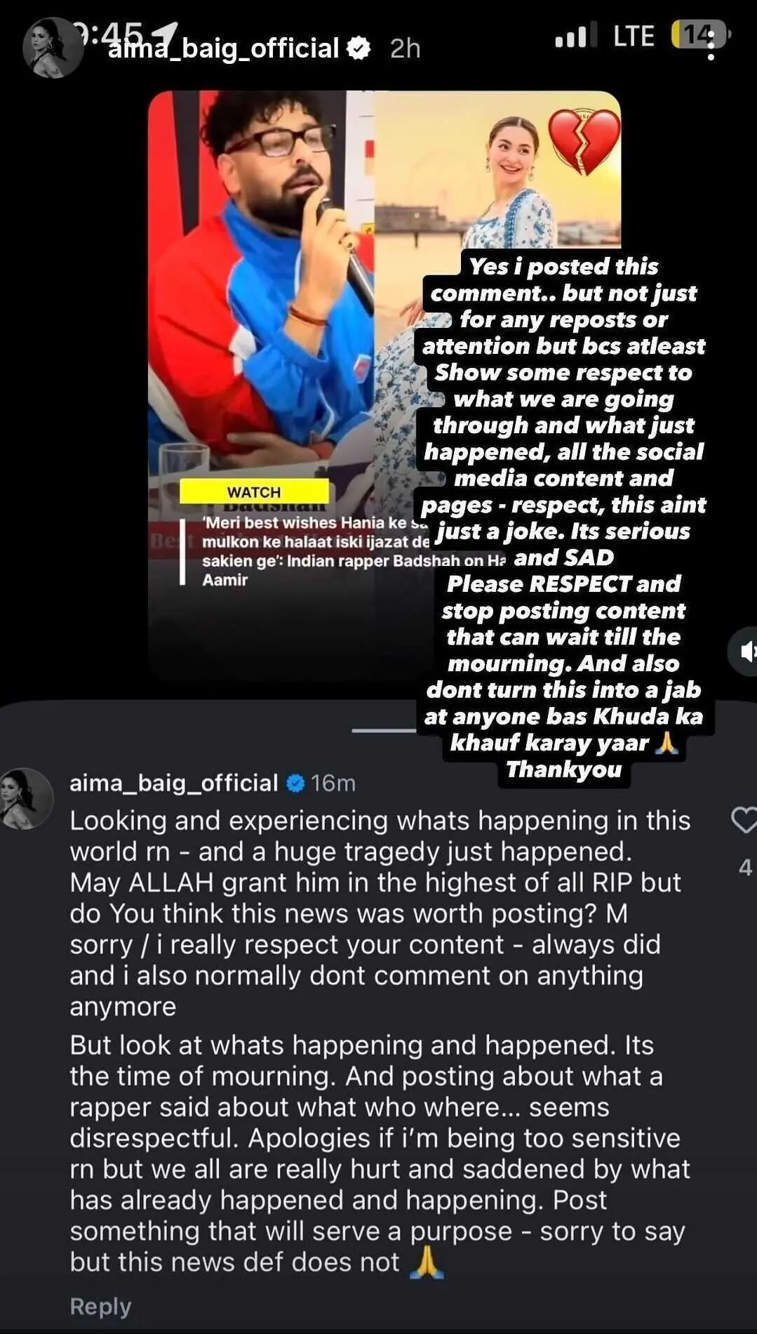 Aima Baig was not amused by the circulation of this lighthearted news amidst the ongoing global tragedies and mourning.