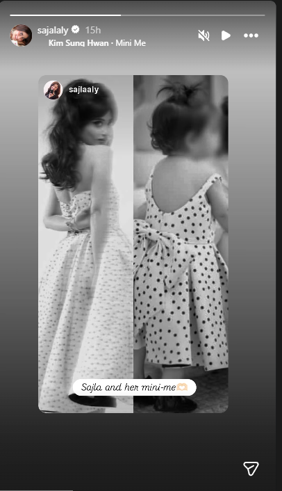 Sajal Aly also shared stroy of her with Serena in she and Serena wears similer dresses and penned ” Sajal and her mini me”