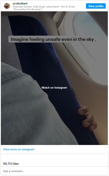 Urvi Kothari, actress and online creator, dropped a viral Instagram clip claiming a guy on her recent flight kept acting shady and making her feel unsafe. Filmed April 1 on a regular commercial plane, it shows her in her seat with the dude behind her grabbing it over and over.