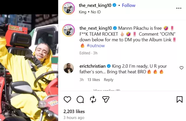 “Mannn, Pikachu is free. F**K TEAM ROCKET. Comment “OGYN“ down below for me to DM you the Album Link”