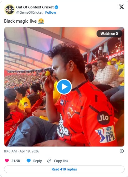 A weird fan act during Sunrisers Hyderabad’s (SRH) IPL win against Chennai Super Kings (CSK) on April 18 has got social media talking, starting new talks about old beliefs in cricket.