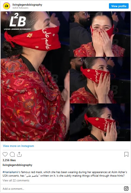 Hania Aamir was seen attending the concert while attempting to stay discreet, covering her face in the crowd. However, her choice of accessory quickly caught attention online. She was wearing a bandana featuring the name “Asim Ali,” which is closely associated with Asim Azhar’s identity and recent artistic work.