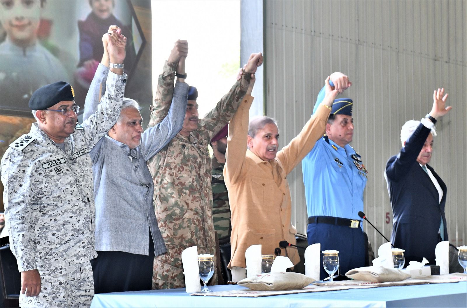 Prime Minister Muhammad Shehbaz Sharif, accompanied by senior cabinet members including the Deputy Prime Minister and Foreign Minister, Minister of Defence, Minister of Planning & Development, and Minister of Information, visited the Pakistan Air Force’s operational base at Kamra today. Also in attendance were Chief of Army Staff General Syed Asim Munir, NI (M), and the Chief of the Naval Staff.