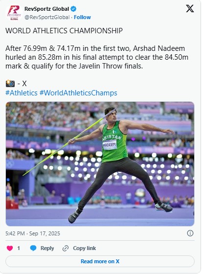 Pakistan’s star javelin thrower Arshad Nadeem has secured a place in the men’s javelin throw final at the World Athletics Championships 2025 in Tokyo, keeping his hopes alive for another major medal.