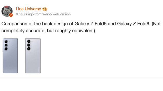 Moreover, the phone’s hinge also looks thinner and on the Chinese social media platform Weibo, Ice notes that in its closed state, the phone’s body is only 1mm wider than the Fold 5, which is 68.1mm wide.