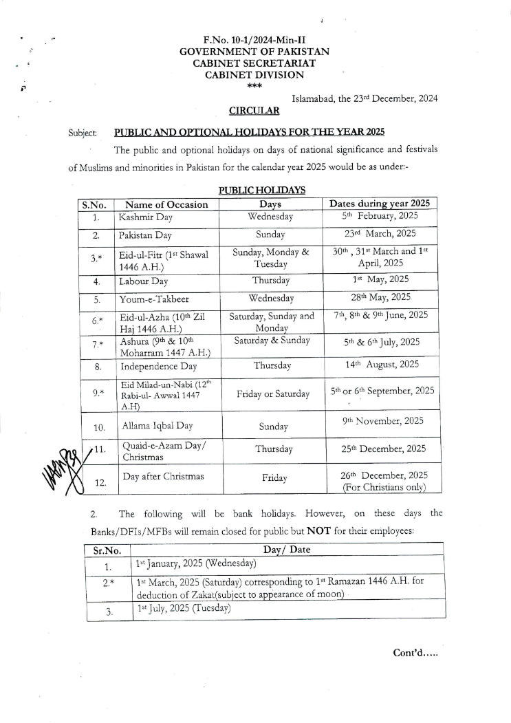 Islamabad (May 2, 2025) – The government of Pakistan has announced three public holidays for Eid ul Adha 2025. The holidays will be from Saturday, June 7 to Monday, June 9. These holidays are mentioned in the official list issued by the federal government.