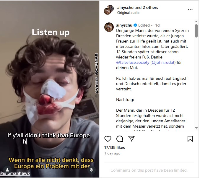 John Rudat, a 21-year-old model and paramedic from New York, was seriously injured after a knife attack on a tram in Dresden, Germany, local media reported. According to reports, Rudat suffered a deep cut on his face while defending several women from harassment during the incident in the early hours of Sunday, August 24. Police later apprehended one suspect, though the attacker remains at large.