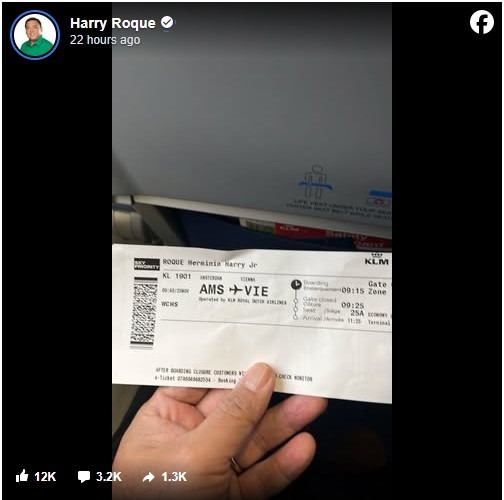 To clarify the situation, Roque posted a picture of his boarding pass on Facebook on November 25, showing his flight from Amsterdam to Vienna, Austria. He wrote that the arrest rumors were untrue. The Department of Foreign Affairs also confirmed that he had not been detained in the Netherlands. “There is no truth to the rumors that I have been arrested. I have a scheduled flight to Vienna, Austria today, November 25,” Roque said.