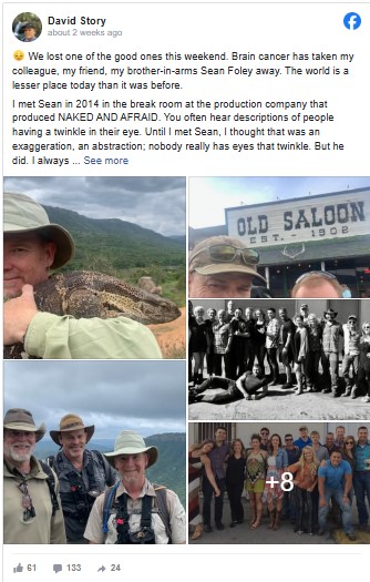 Mandy Horvath, a cast member of Naked and Afraid, shared on Facebook how Foley supported her during filming while privately battling cancer. She said, “He eased my fears. He challenged me. He made everything possible. He stayed true to his promise and then some. Somewhere in all of that, we became close. I learned that behind the scenes he was fighting brain cancer while still carrying the weight of being the executive producer for Naked and Afraid. He carried that battle privately.”