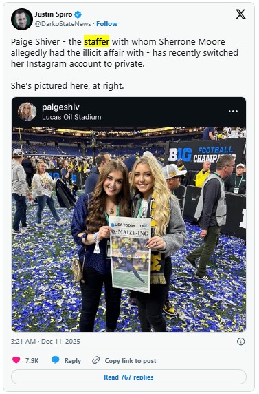 While the University has not named the staffer involved, reports suggest it may be Paige Shiver, who served as Moore’s executive assistant, handling administrative coordination, recruiting assistance, and team operations. Shiver reportedly deactivated her X and LinkedIn accounts and made her Instagram private following the controversy. Neither Moore nor the University has issued statements on unverified rumors regarding Shiver.