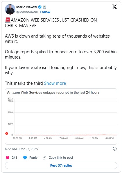 Beyond gaming, users reported issues with services like Steam, the PlayStation Network, and Amazon Web Services (AWS), which many games, including ARC Raiders, rely on for backend infrastructure. Downdetector noted AWS disruptions beginning at 8:04 PM ET. Posts on social media and coverage by The Kobeissi Letter also highlighted the outage.