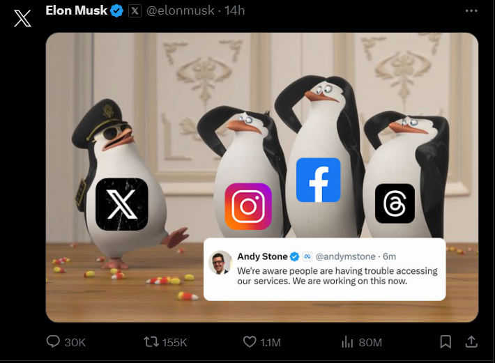 Several users switched to X after Meta’s social media platforms went down for more than one hour.