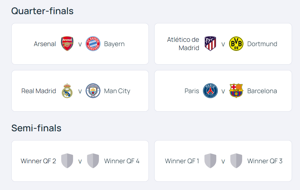 It’s defending champions Manchester City taking on record 14-times winners Real Madrid as UEFA Champions League quarterfinal draws concluded on Friday.