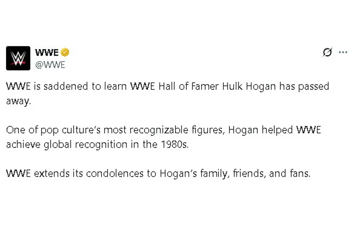ڈبلیو ڈبلیو ای انتظامیہ کی جانب سے ہوگن کے انتقال پر اہلخانہ سے تعزیت کا اظہار کیا گیا ہے۔