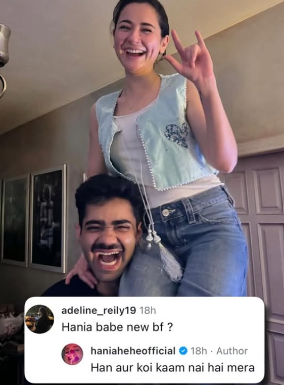 اداکارہ نے حال ہی میں اپنے ایک دوست کے ساتھ تصاویر شیئر کیں تو ایک مداح نے انہیں اداکارہ کا نیا بوائے فرینڈ قرار دے دیاجس پر ہانیہ نے دلچسپ جواب دیا۔