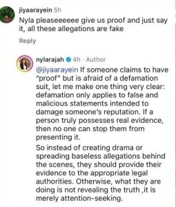اب طلاق کے اعلان کے بعد سوشل میڈیا صارفین نے نائلہ راجہ پر دوبارہ تنقید کی، اور ان سے وضاحت کا مطالبہ کیا کہ آیا الزامات درست ہیں یا نہیں۔ اس کے جواب میں نائلہ راجہ نے اپنی سوشل میڈیا پوسٹ میں واضح کیا کہ بدنامی صرف جھوٹے اور نقصان پہنچانے والے دعوؤں پر لاگو ہوتی ہے اور کسی کو بھی اصل ثبوت پیش کرنے سے نہیں روکا جا سکتا۔