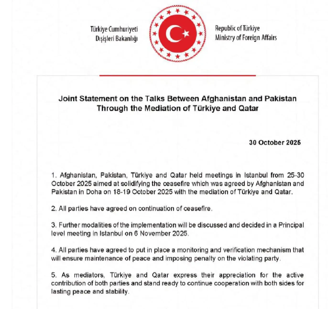 3.مزید تفصیلات طے کرنے اور ان پر عملدرآمد کے لیے اگلی ملاقات 6 نومبر کو استنبول میں ہوگی۔