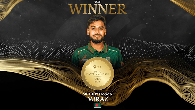 انٹرنیشنل کرکٹ کونسل (آئی سی سی) نے بنگلادیش کے کرکٹر مہدی حسن کو پلیئر آف دی منتھ قرار دیدیا ہے، انہیں اپریل میں شاندار کارکردگی کی بنیاد پر یہ اعزاز دیا گیا۔