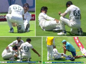 کیپ ٹاؤن میں کھیلے جارہے میچ میں شارٹ تھرڈ مین باؤنڈری پر گیند کا پیچھا کرنے کی کوشش کی، اس دوران باؤنڈری لائن کے قریب صائم کا دائیں ٹخنہ مڑ گیا جس کے سبب انہیں چوٹ لگی۔