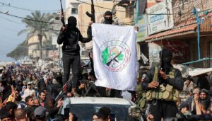 فلسطینی کے باسیوں نے مزاحمت کی علامت سمجھی جانے والی تنظیم حماس کے کمانڈرز کیساتھ شہر میں جشن منایا اور اسرائیل شکست کا مذاق اڑاتے رہے۔