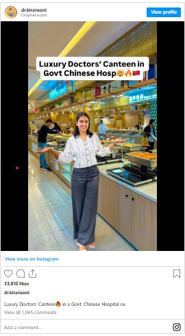A video showcasing a luxurious doctors’ canteen inside a Chinese government hospital has taken social media by storm. The clip, shared on Instagram by doctor and influencer Kiran Soni, who has over 28,000 followers, has garnered nearly 460,000 views, offering viewers a glimpse into a high-end dining space that resembles a five-star hotel.